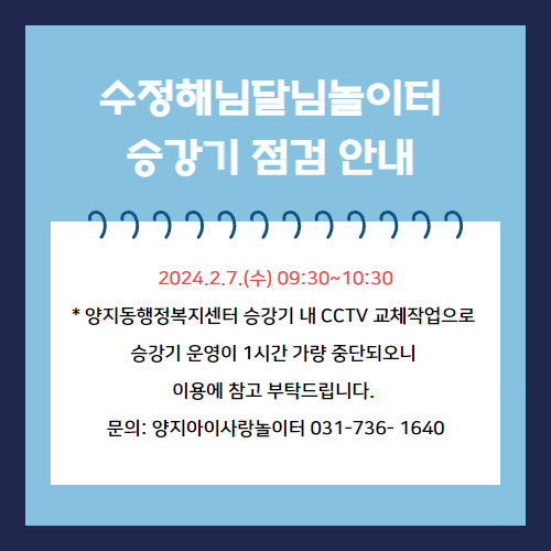 수정해님달님놀이터 엘리베이터 사용 중단 안내