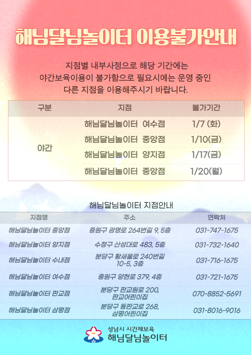 해님달님놀이터(야간) 양지점 이용불가 안내
