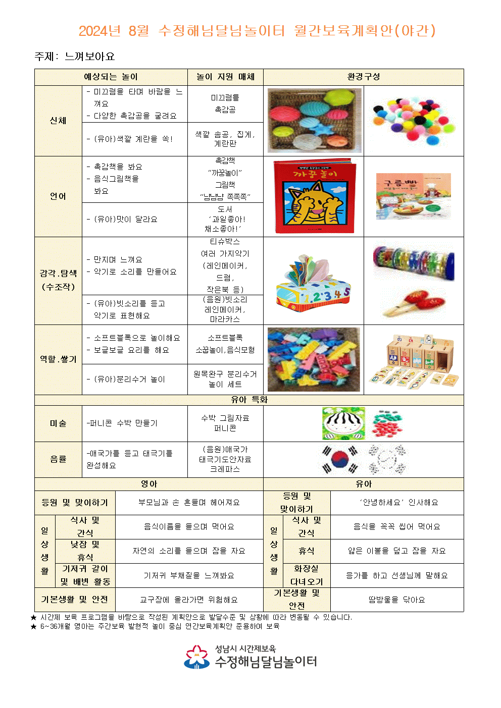 8월 수정해님달님놀이터 월간계획안