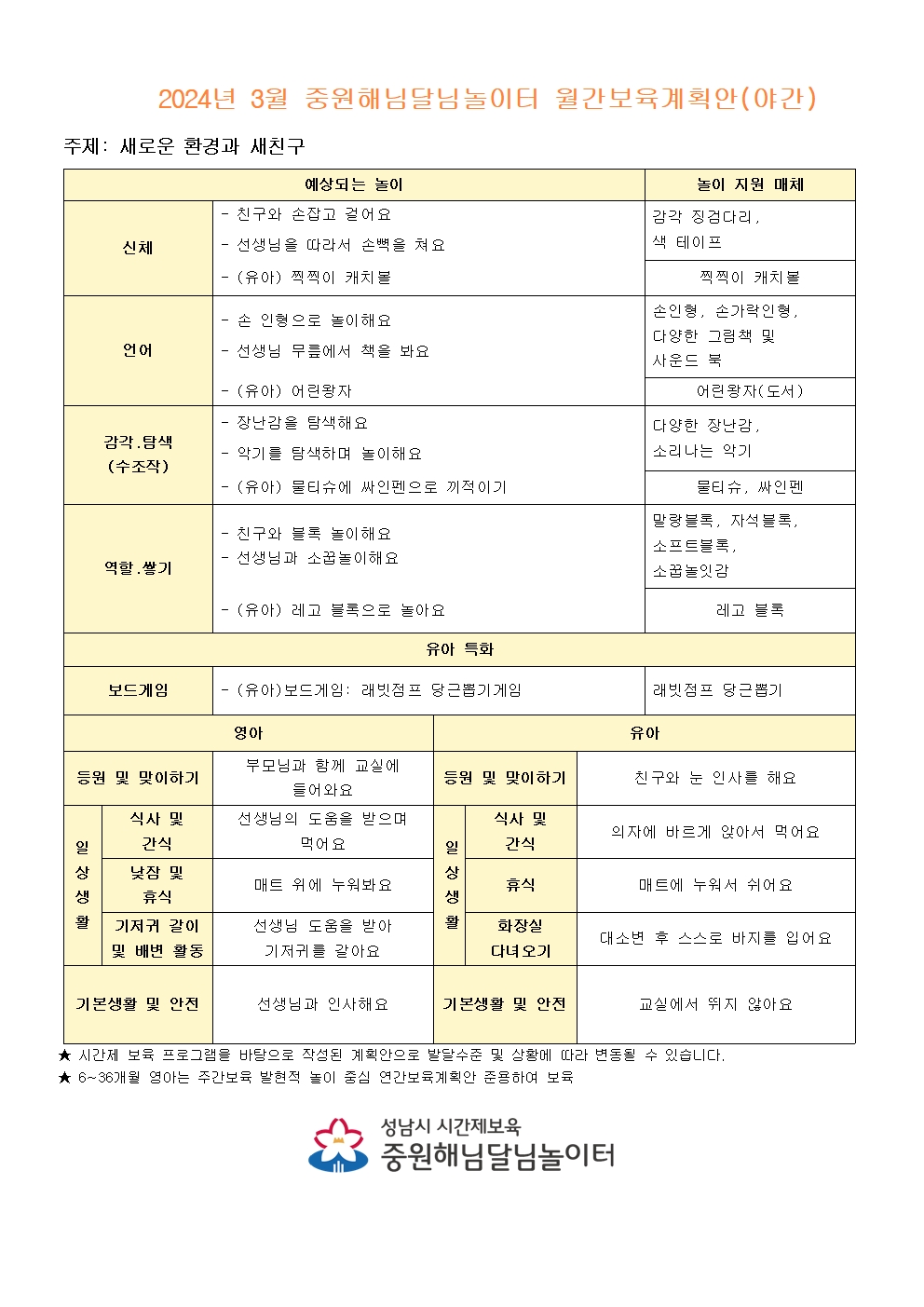 3월 중원해님달님놀이터 월간계획안