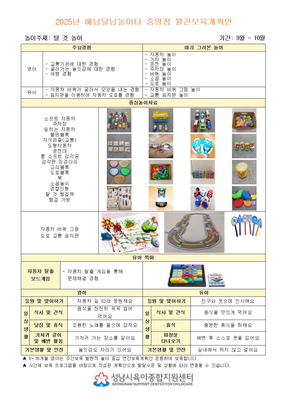 9월~10월 해님달님놀이터 중앙점 월간계획안