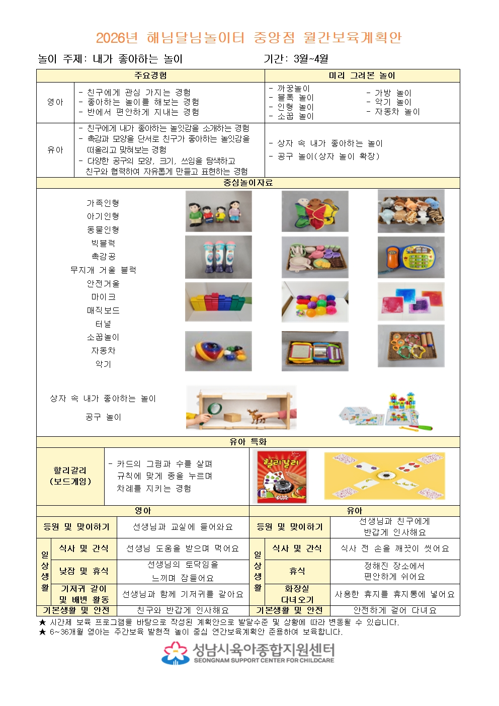 3월~4월 해님달님놀이터 중앙점 월간계획안