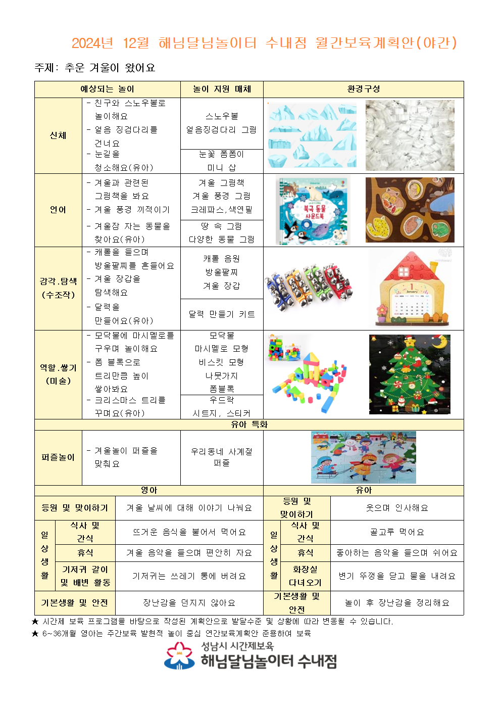 2025년 1월 해님달님놀이터 수내점 월간계획안