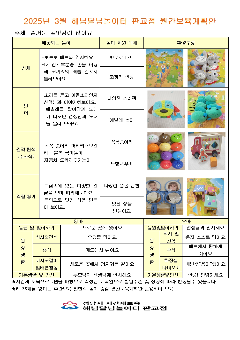 3월 해님달님 판교점 월간계획안