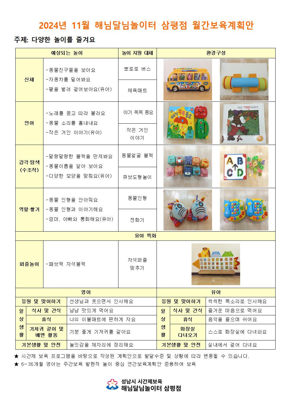 11월 해님달님놀이터 삼평점 월간계획안