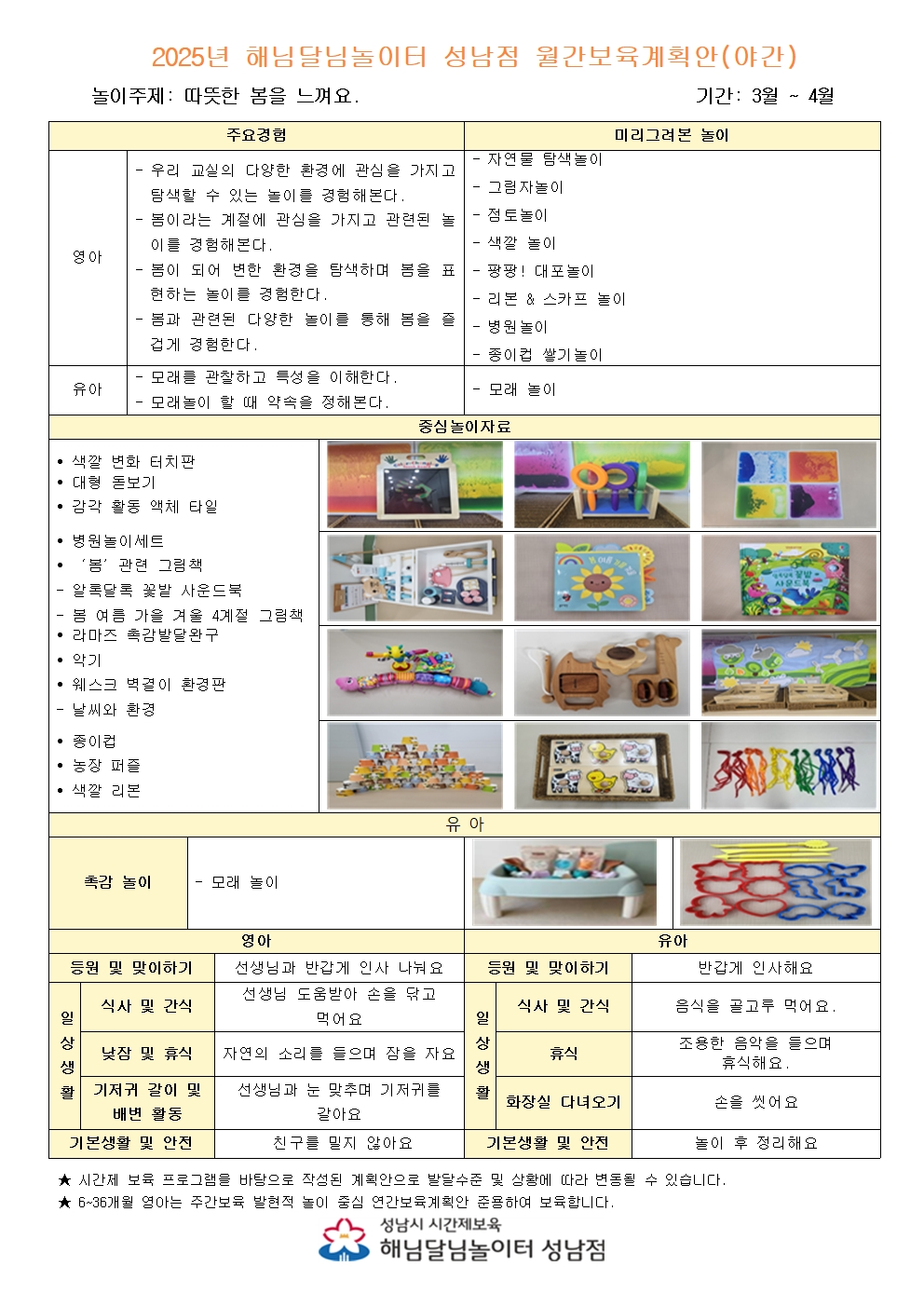 3-4월 해님달님놀이터 성남점 월간계획안