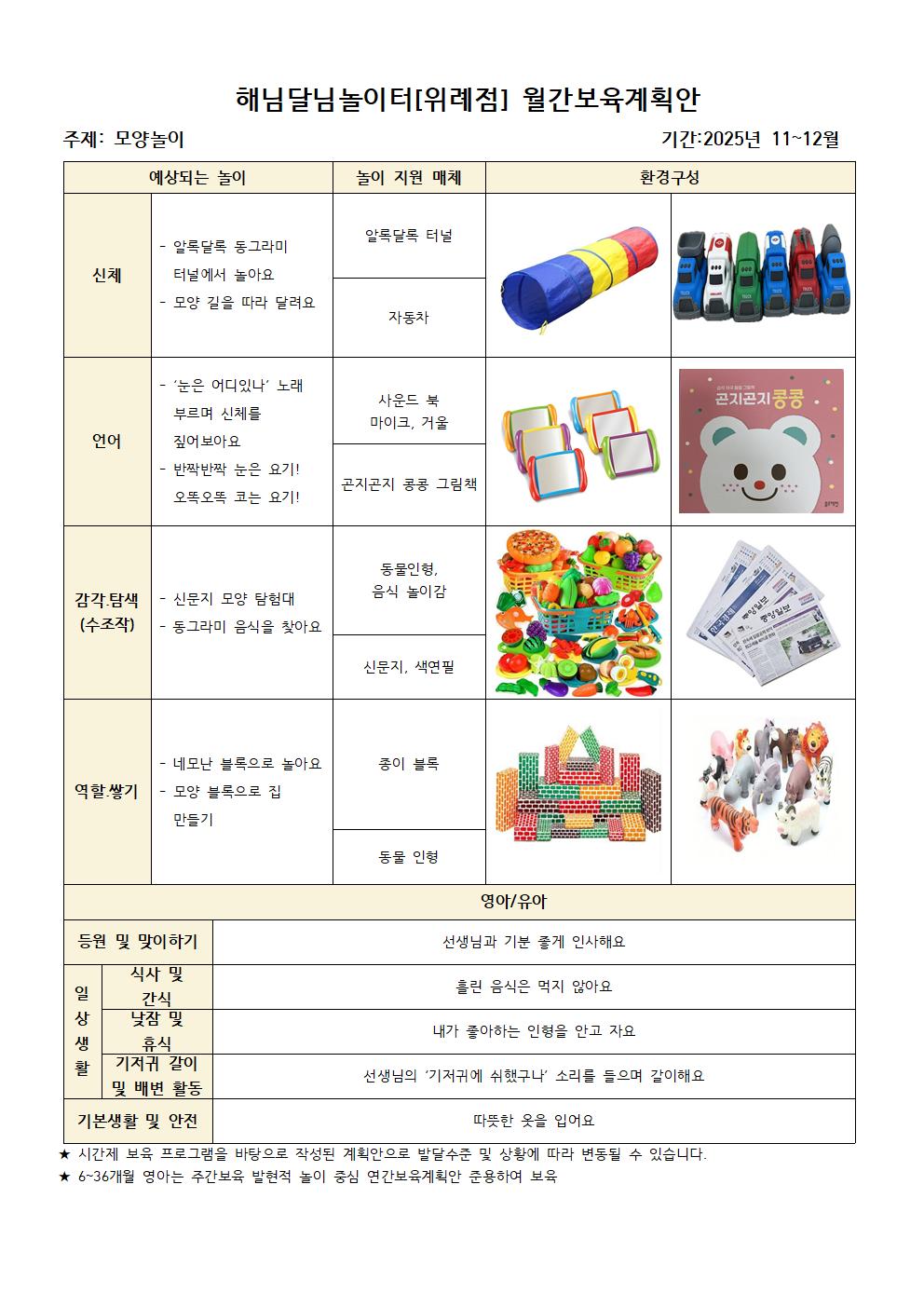 11~12월 해님달님놀이터 위례점 월간계획안
