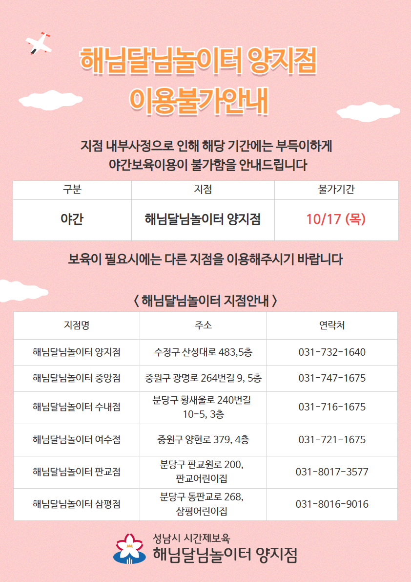 해님달님놀이터(야간) 양지점 이용불가 안내