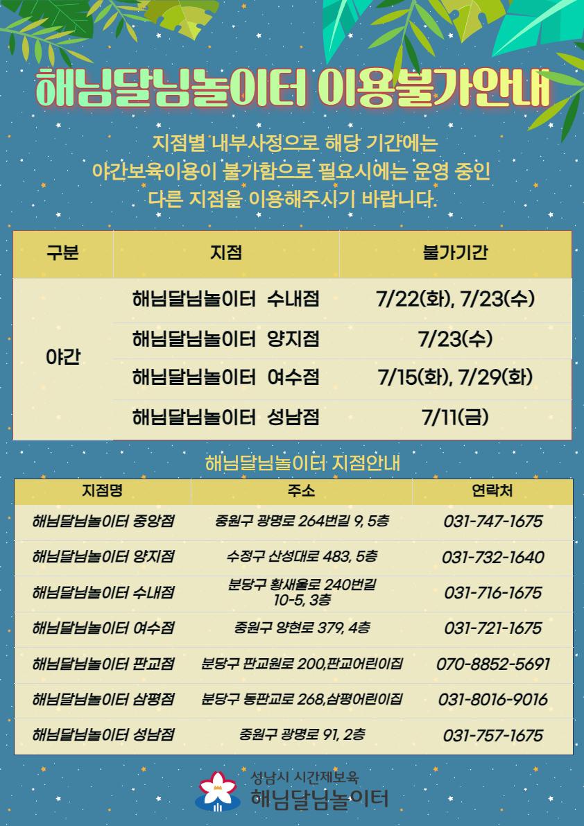 해님달님놀이터(야간) 7월 이용불가안내