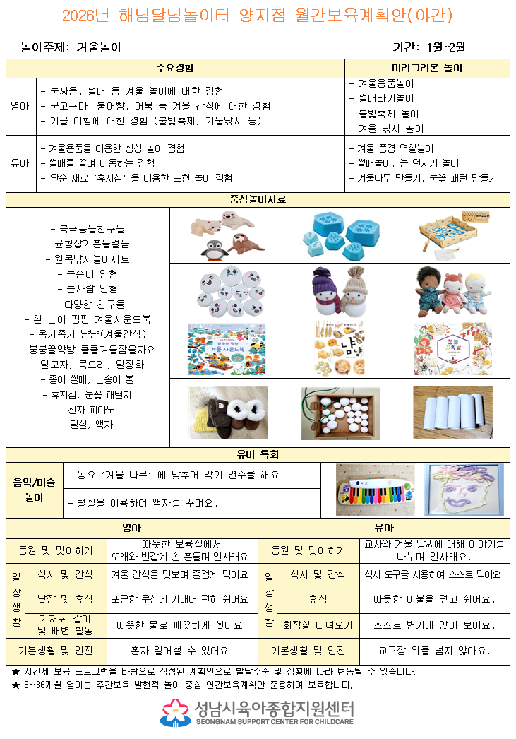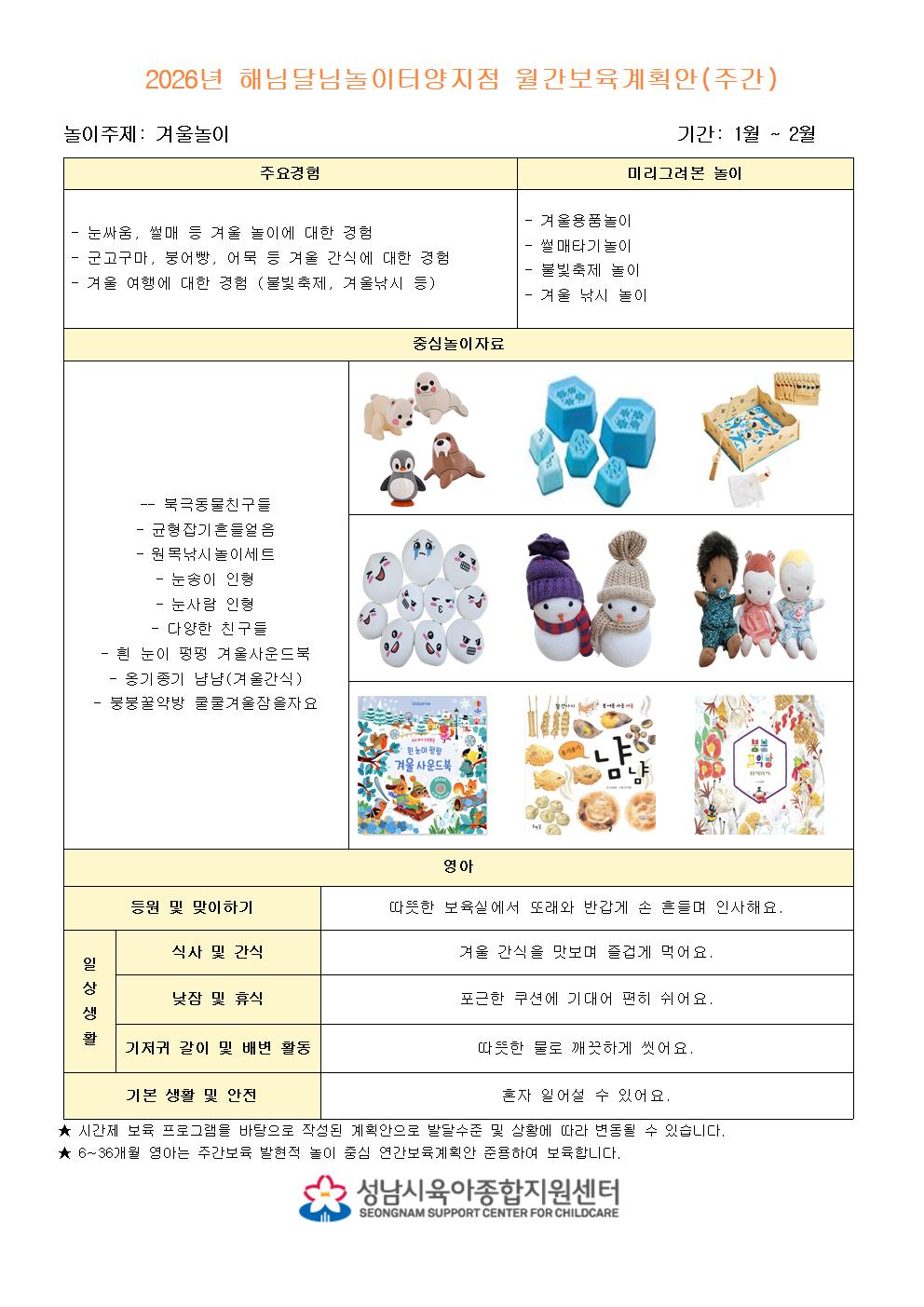 26년 1월~2월 해님달님놀이터 양지점 월간계획안
