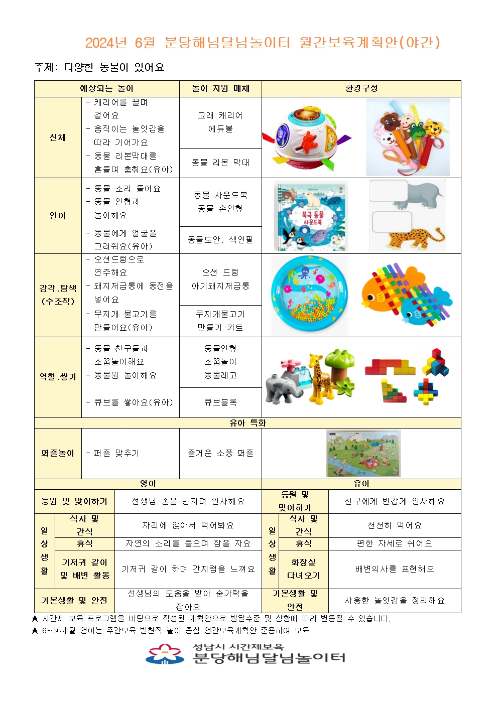 6월 분당해님달님놀이터 월간계획안