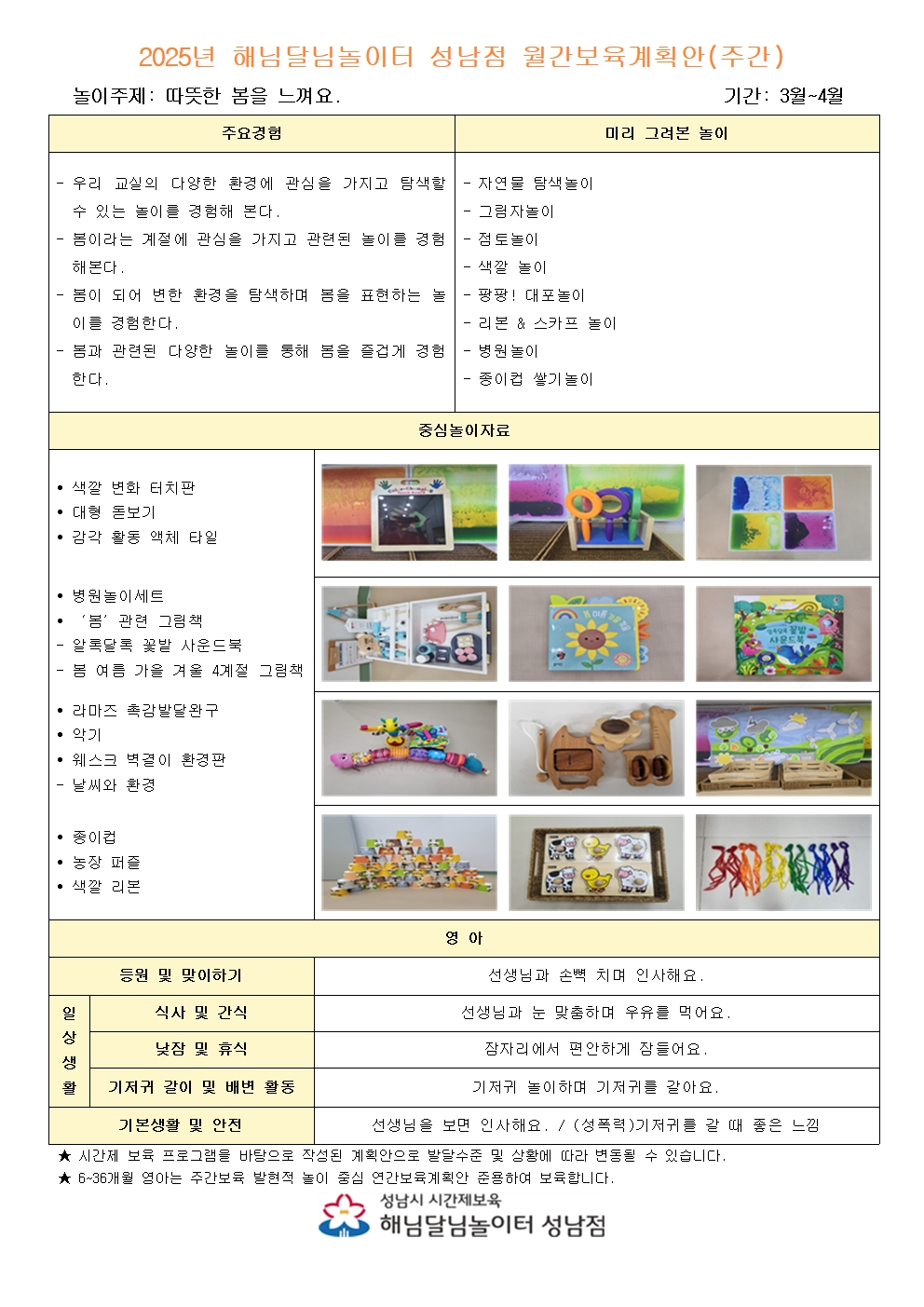 3-4월 해님달님놀이터 성남점 월간계획안
