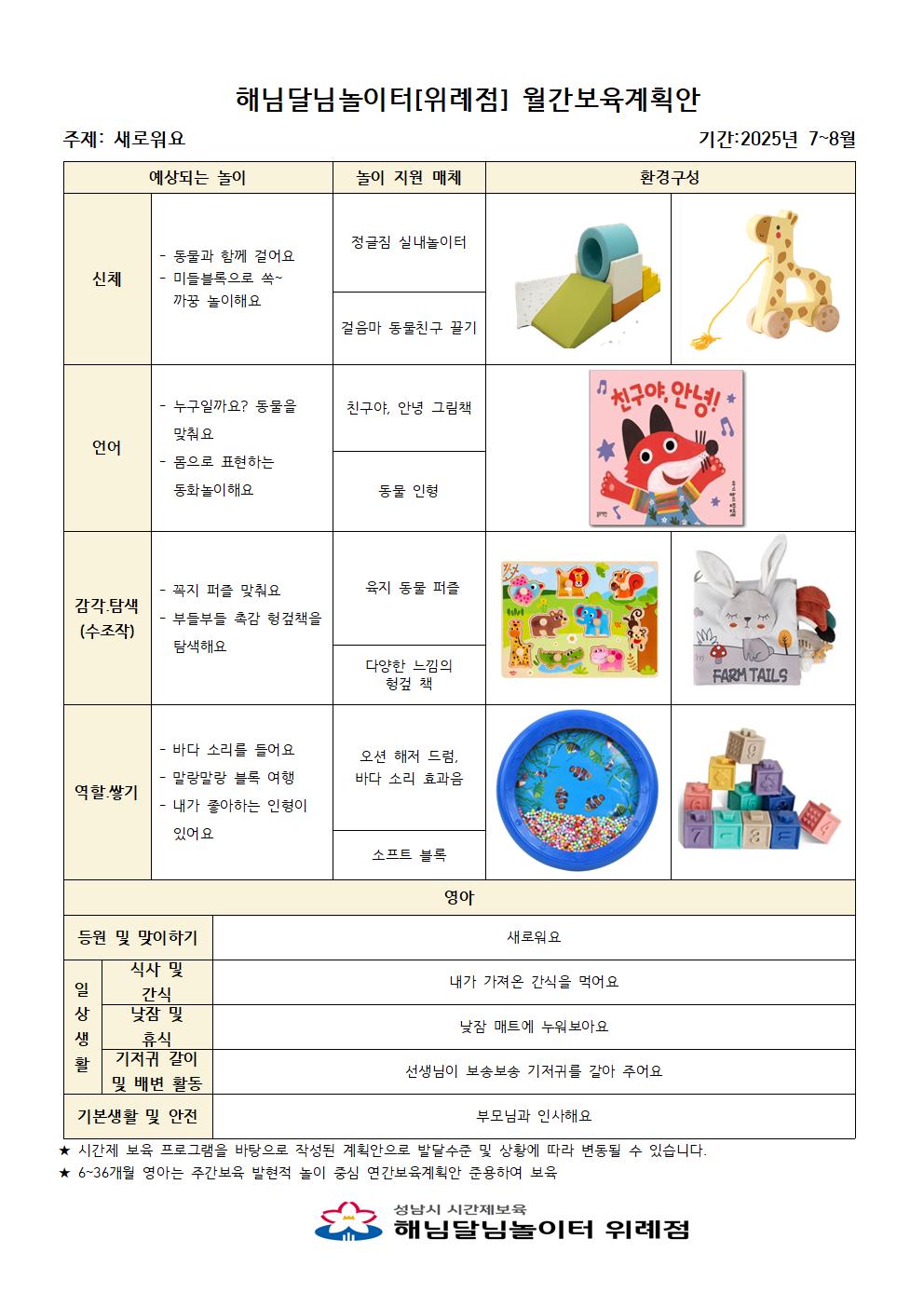 7~8월 해님달님놀이터 위례점 월간계획안