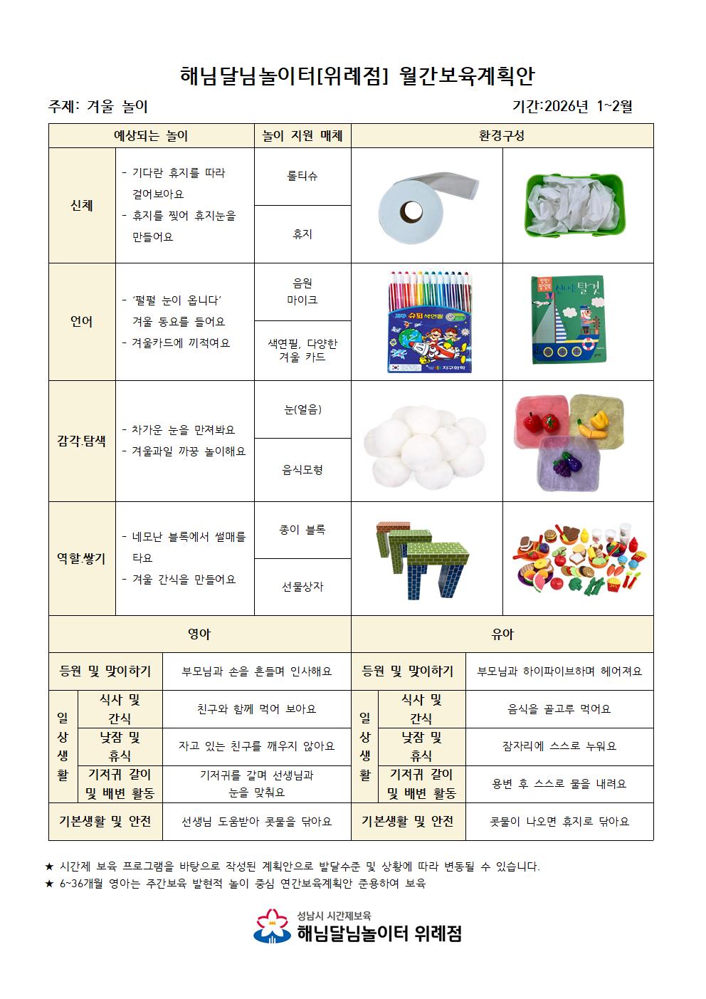 1~2월 해님달님놀이터 위례점 월간계획안