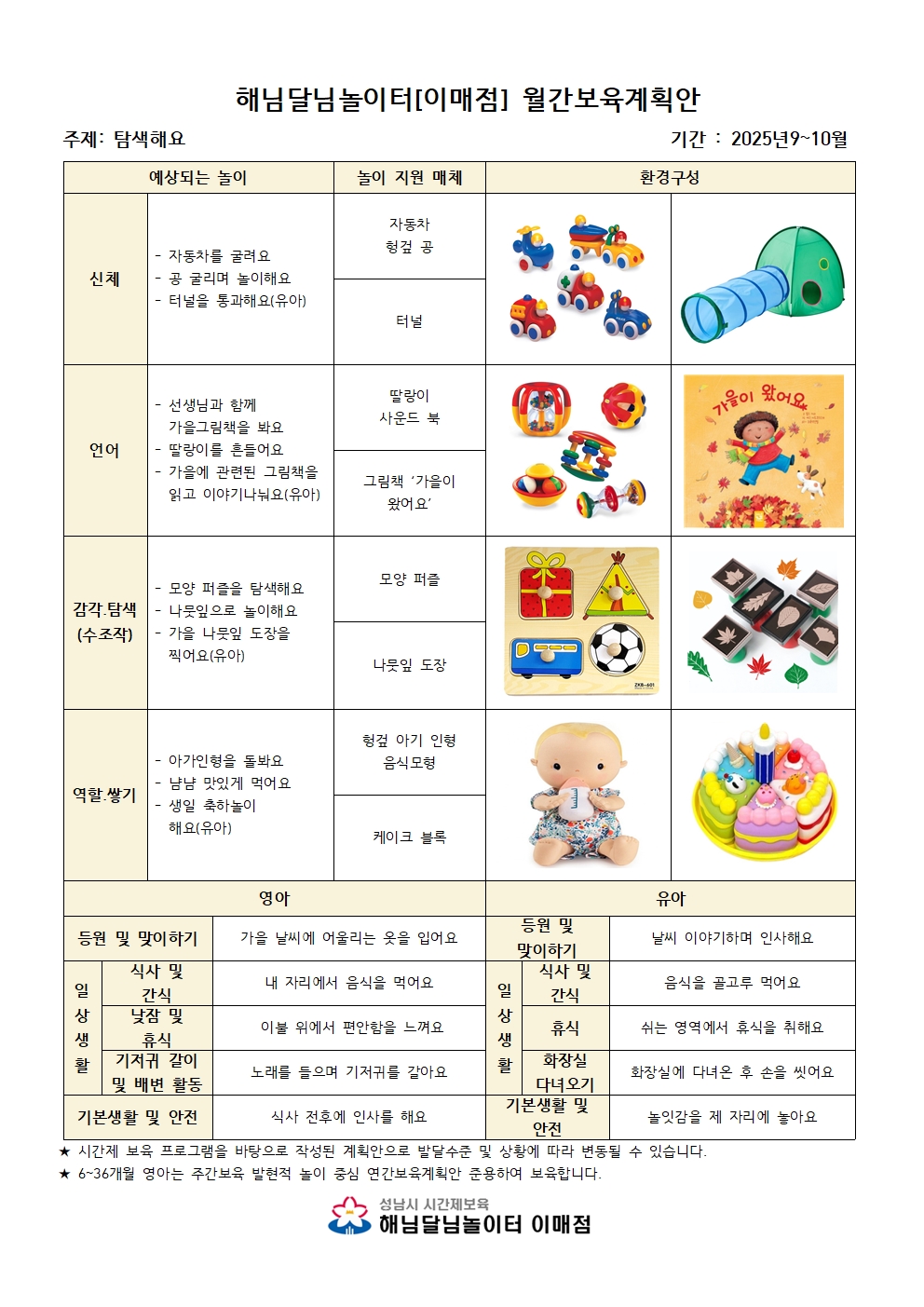 9월-10월 해님달님놀이터 이매점 월간계획안