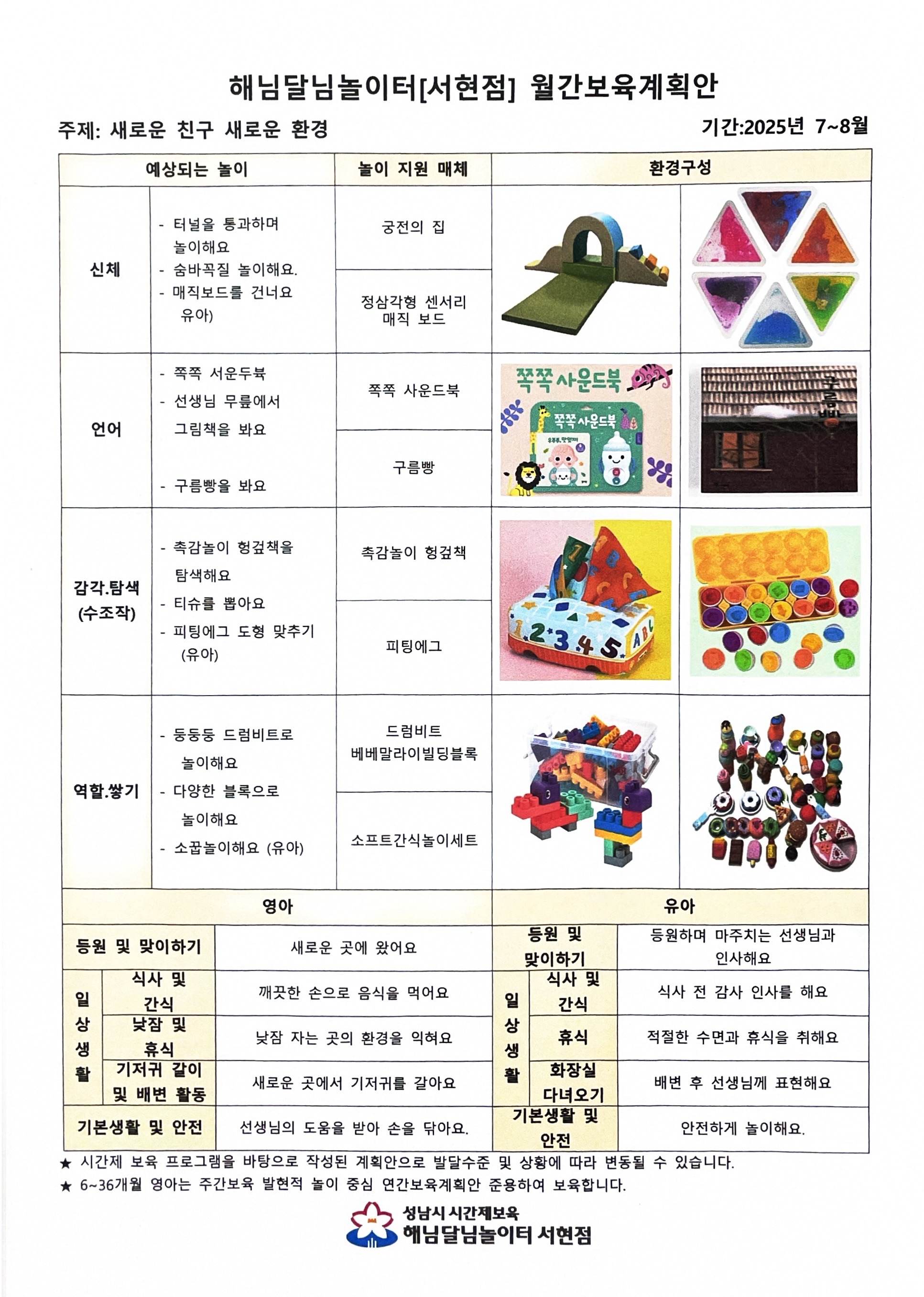 7-8월 해님달님놀이터 서현점 월간 계획안