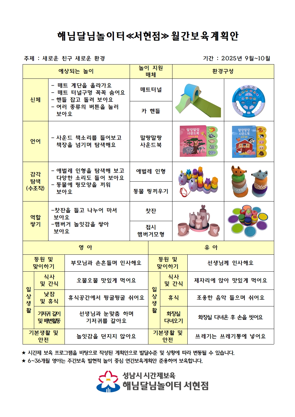 9-10월 해님달님놀이터 서현점 월간 계획안