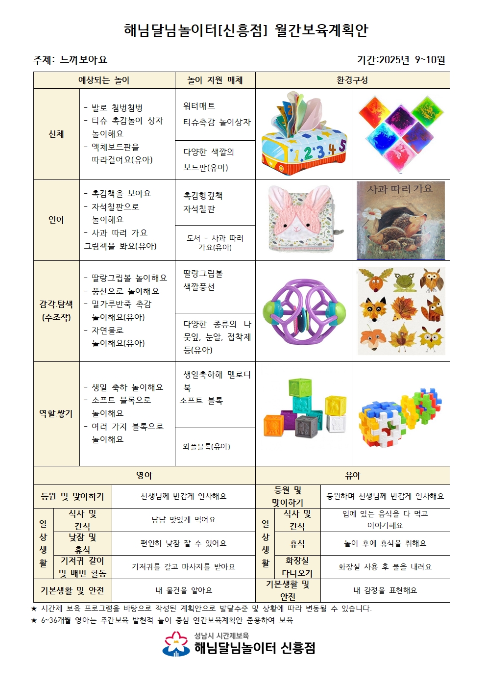 9~10월 해님달님놀이터 신흥점 월간보육계획안
