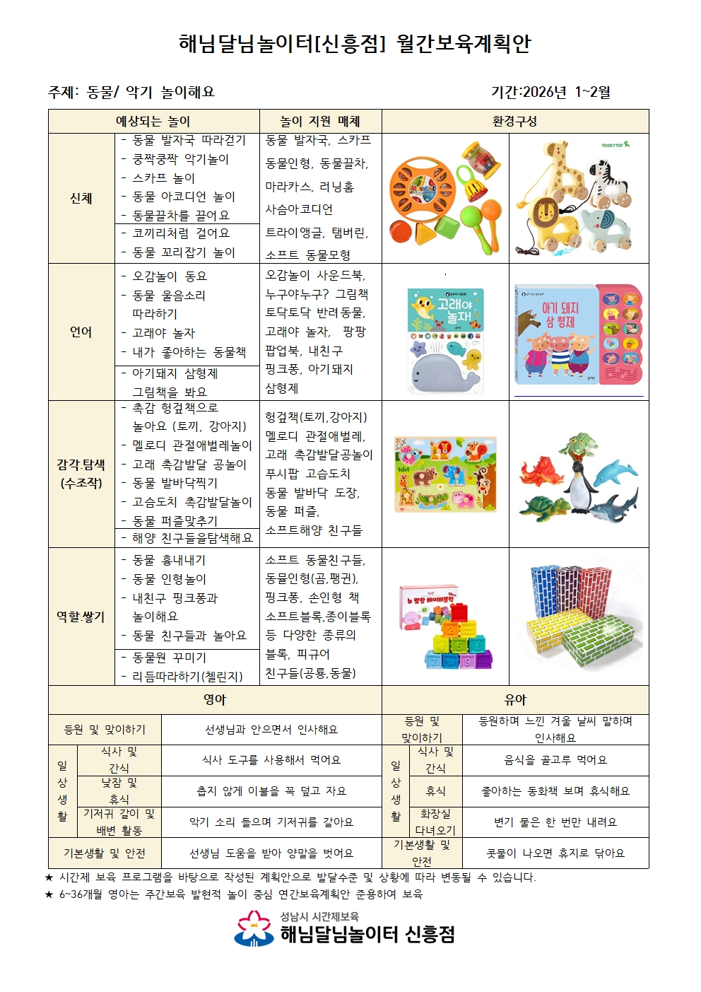 2026년 1 ~ 2월 해님달님놀이터 신흥점 월간계획안
